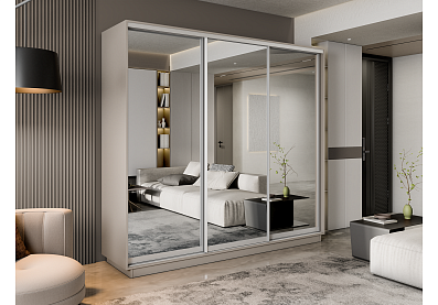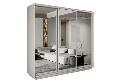 Шкаф-купе Премиум 3-х дв. 210х240х60, кашемир Зеркало/Зеркало/Зеркало 210x240 Кашемир , С полками